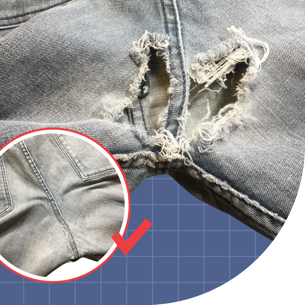 We use buttery-soft, luxury patch lining and repurposed jeans components for repairs.