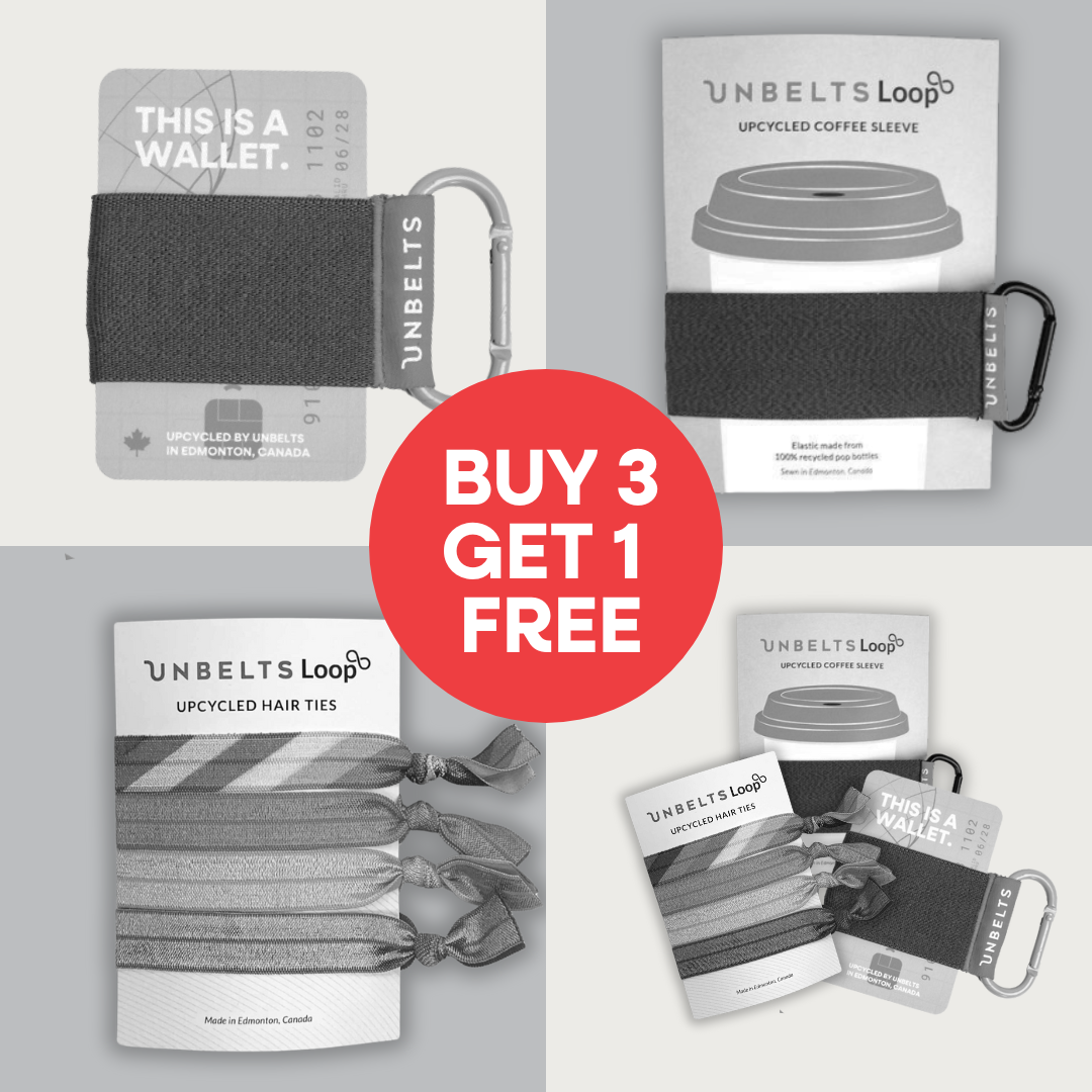 About Unwallets: A sleek, sustainable, made-in-Canada alternative to bulky leather wallets. Upcycled from our stretch belt offcuts, this vegan elastic wallet has a no-slip inner grip that securely holds from 1 to 12 (yes, really) cards, plus cash and business cards slipped in-between.