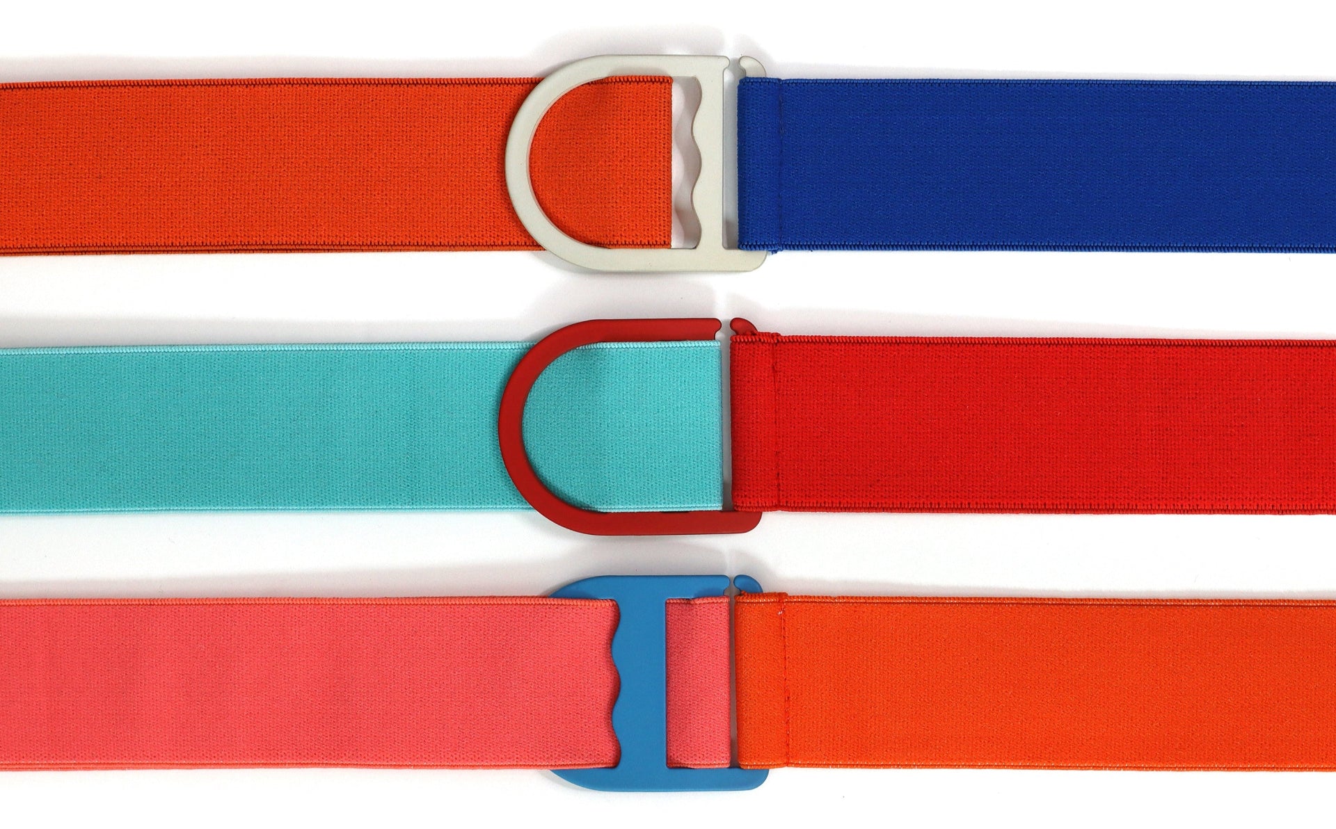 Design your own rainbow stretch belt with our new interchangeable, Canadian-made bands and buckles.